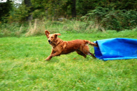 Maja har tävlat i lydnad - och har titeln LP1 och agility - där vi tagit två pinnar i klass 1. Hon har också testat viltspår och personspår, och så tränar vi lite apportering - med dummies eftersom vi inte har något vilt... eller om sanningen ska fram främst för att matte tycker bättre om levande djur...